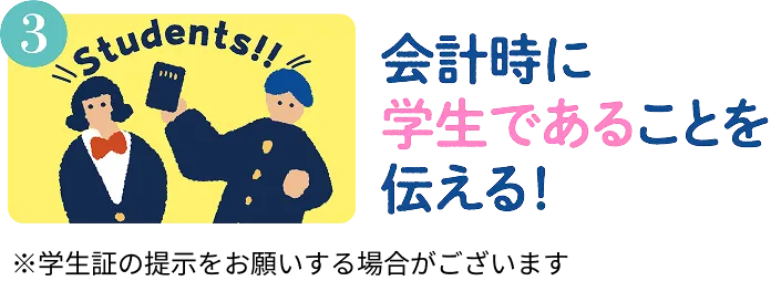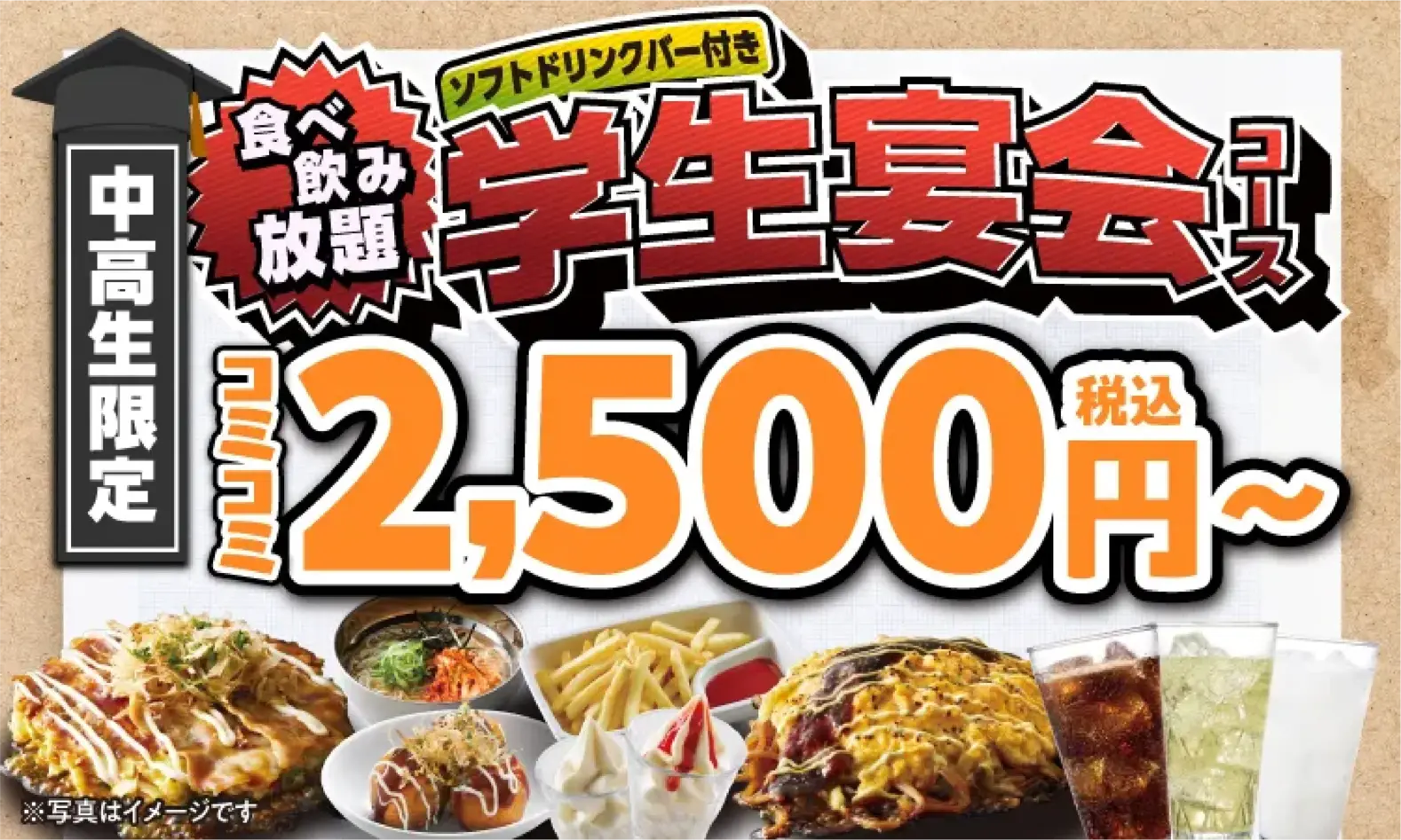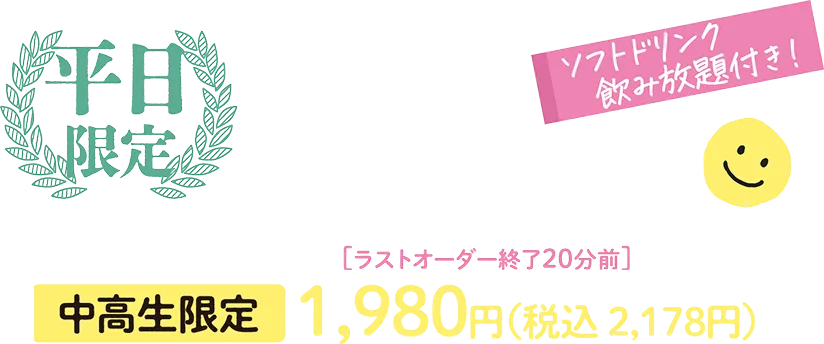 ・前日までのご予約が必要です ・3名以上でご利用可能です ・ご注文時に学生証のご提示をお願いいたします