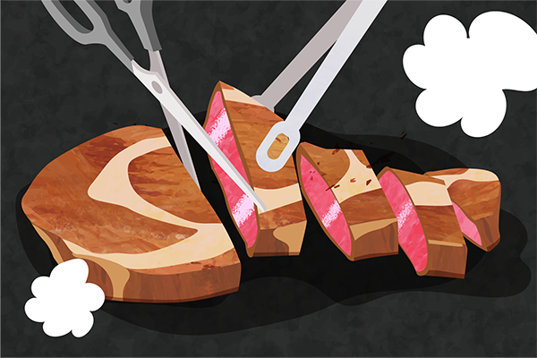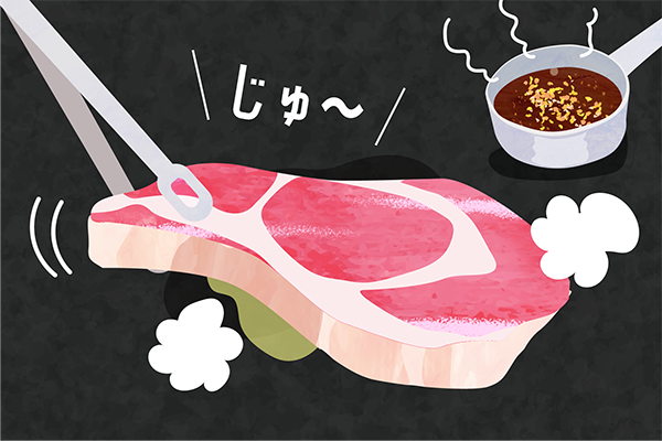 ③ステーキをひっくり返して、さらに2分焼く