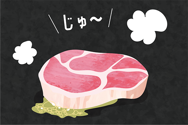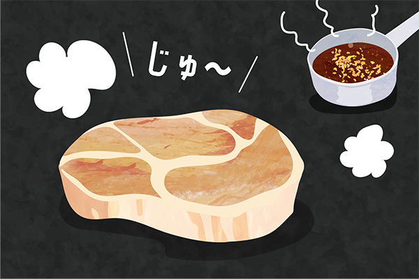 ①ステーキのスパイスがついた面から2分半焼く