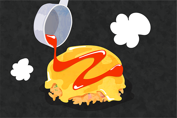 ⑤玉子をご飯の上にかぶせ、ケチャップをかけて完成!